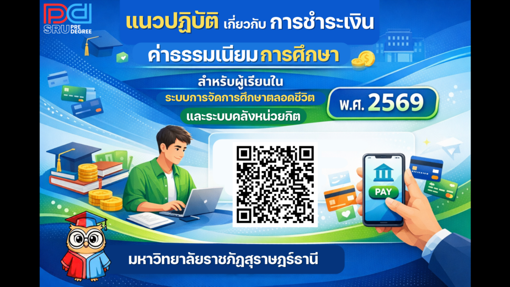 ประกาศมหาวิทยาลัยราชภัฏสุราษฎร์ธานี เรื่อง แนวปฏิบัติเกี่ยวกับการชำระเงินค่าธรรมเนียมการศึกษาสำหรับผู้เรียนในระบบการจัดการศึกษาตลอดชีวิตและระบบคลังหน่วยกิต พ.ศ. 2569